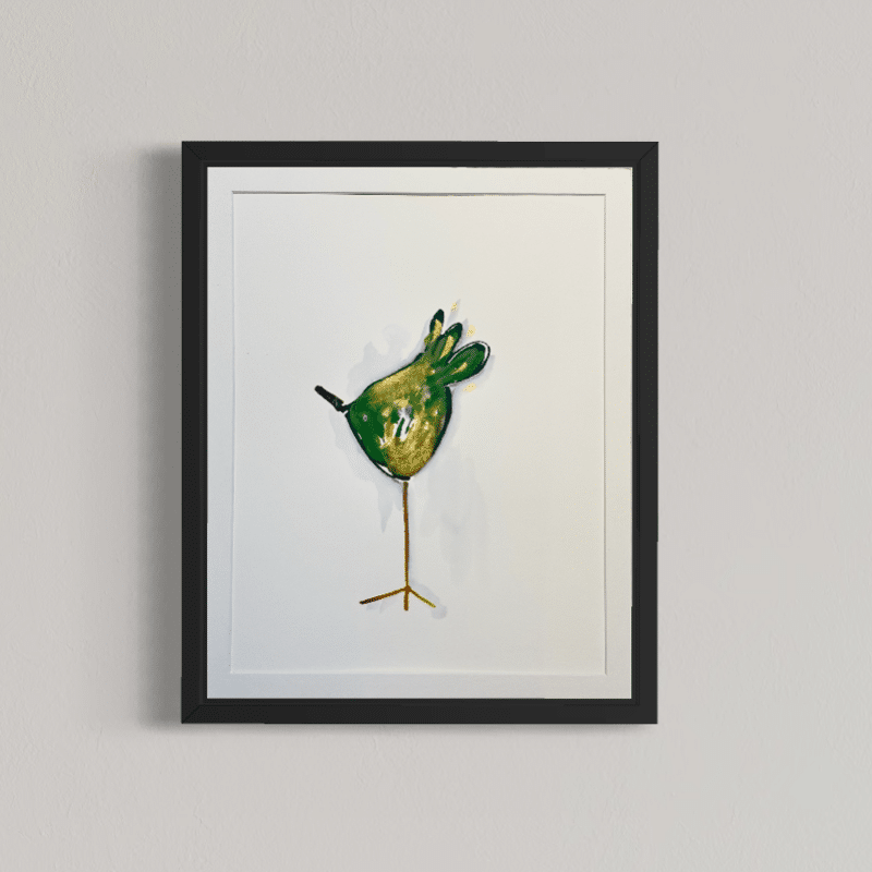 Alle værker er unikke og originale, og monteret i en sort træramme med en smule træstruktur.