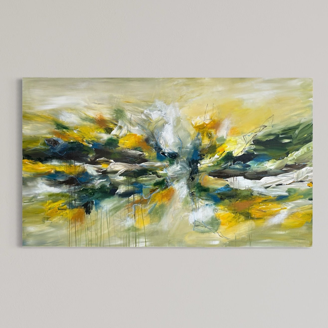Primært, da det er mere sikkert end fragt med en transportør. Samtidig vil jeg også gerne vise dig maleriet i mit studies inspirerende rammer, og give dig tips og tricks til placering og styling af dit maleri.