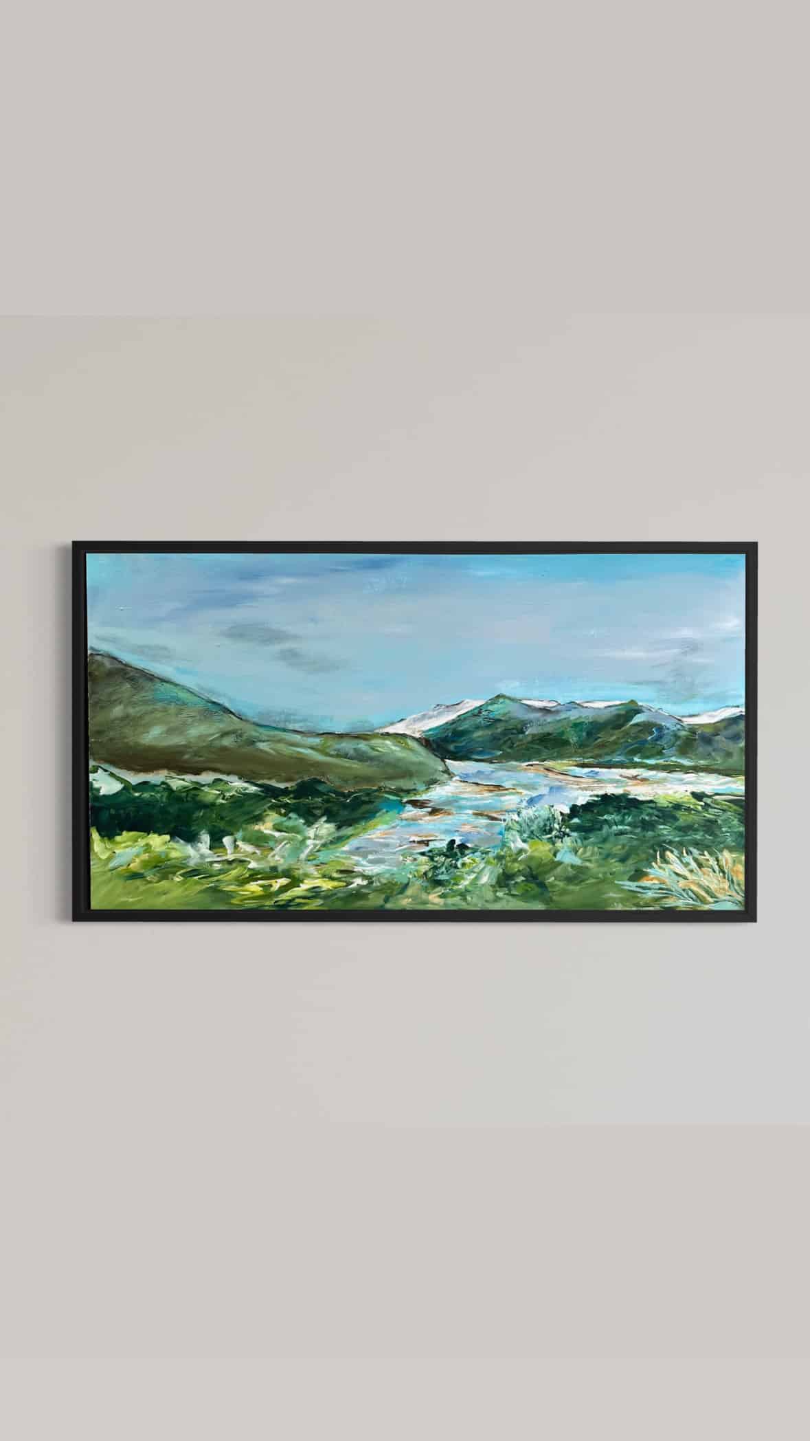 Primært, da det er mere sikkert end fragt med en transportør. Samtidig vil jeg også gerne vise dig maleriet i mit studies inspirerende rammer, og give dig tips og tricks til placering og styling af dit maleri.