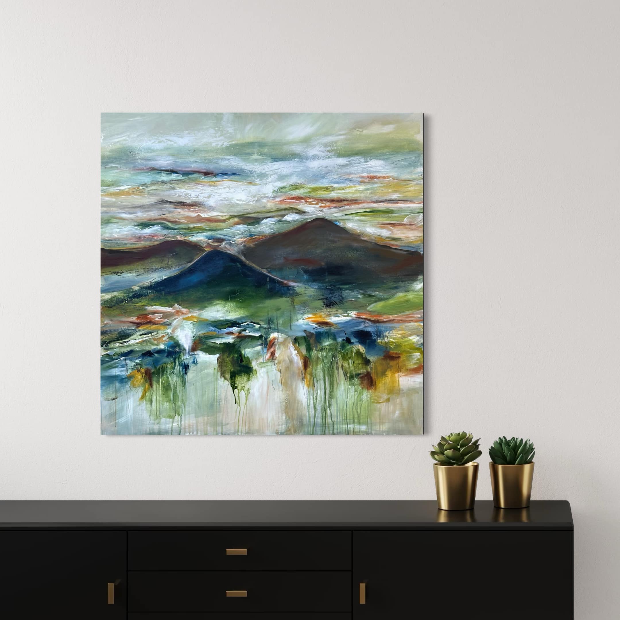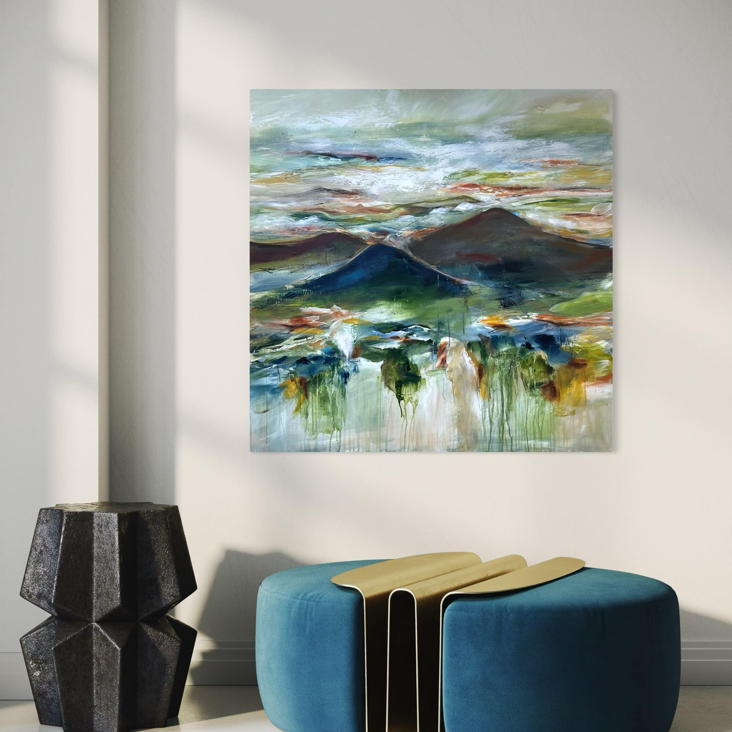 Primært, da det er mere sikkert end fragt med en transportør. Samtidig vil jeg også gerne vise dig maleriet i mit studies inspirerende rammer, og give dig tips og tricks til placering og styling af dit maleri.