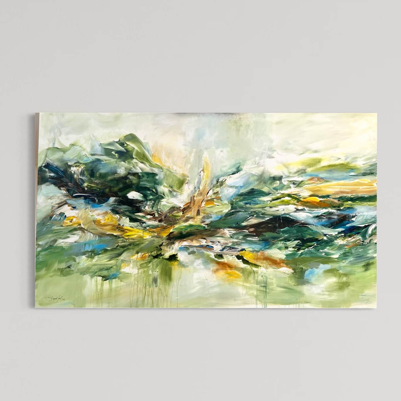 Primært, da det er mere sikkert end fragt med en transportør. Samtidig vil jeg også gerne vise dig maleriet i mit studies inspirerende rammer, og give dig tips og tricks til placering og styling af dit maleri.