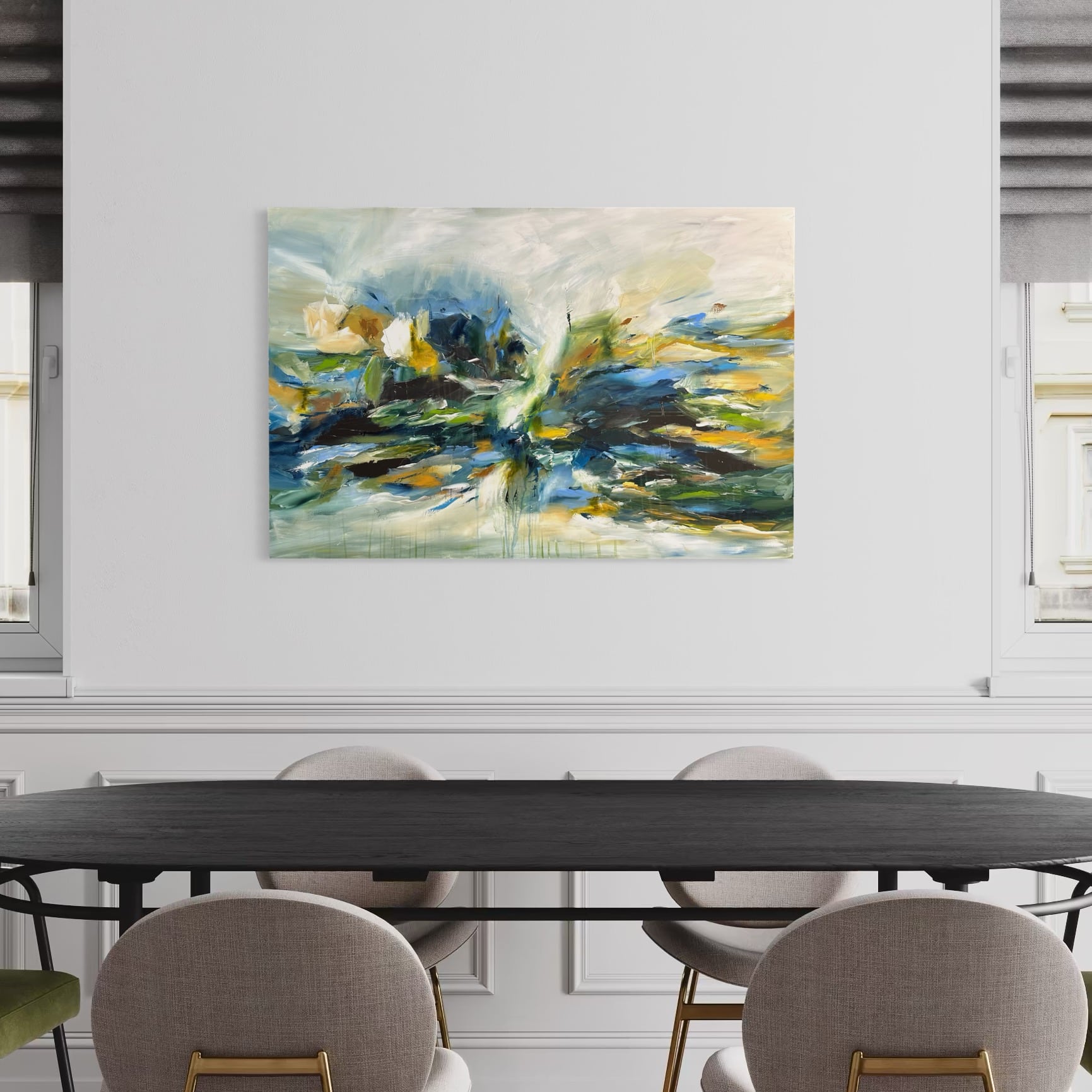Primært, da det er mere sikkert end fragt med en transportør. Samtidig vil jeg også gerne vise dig maleriet i mit studies inspirerende rammer, og give dig tips og tricks til placering og styling af dit maleri.