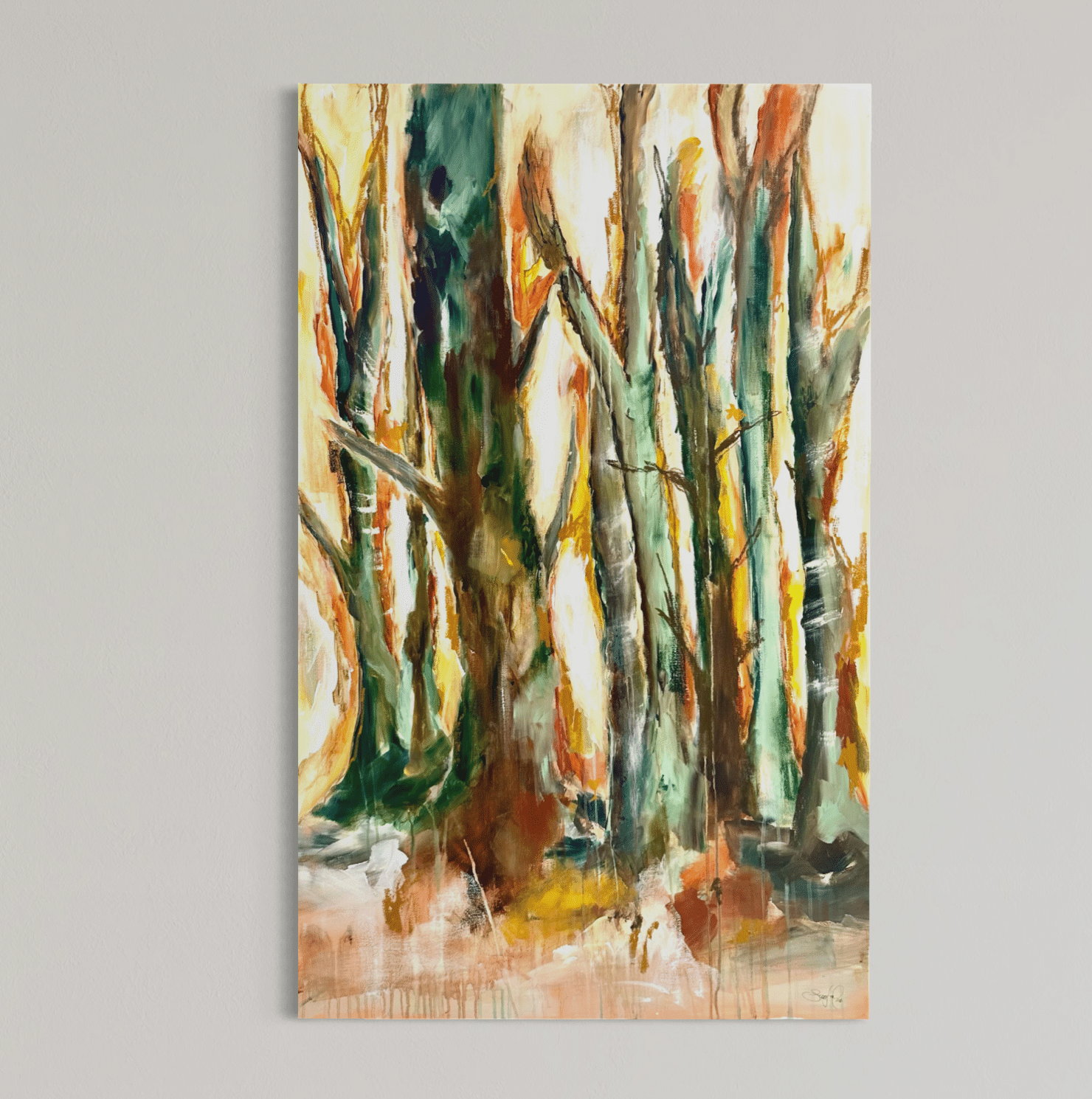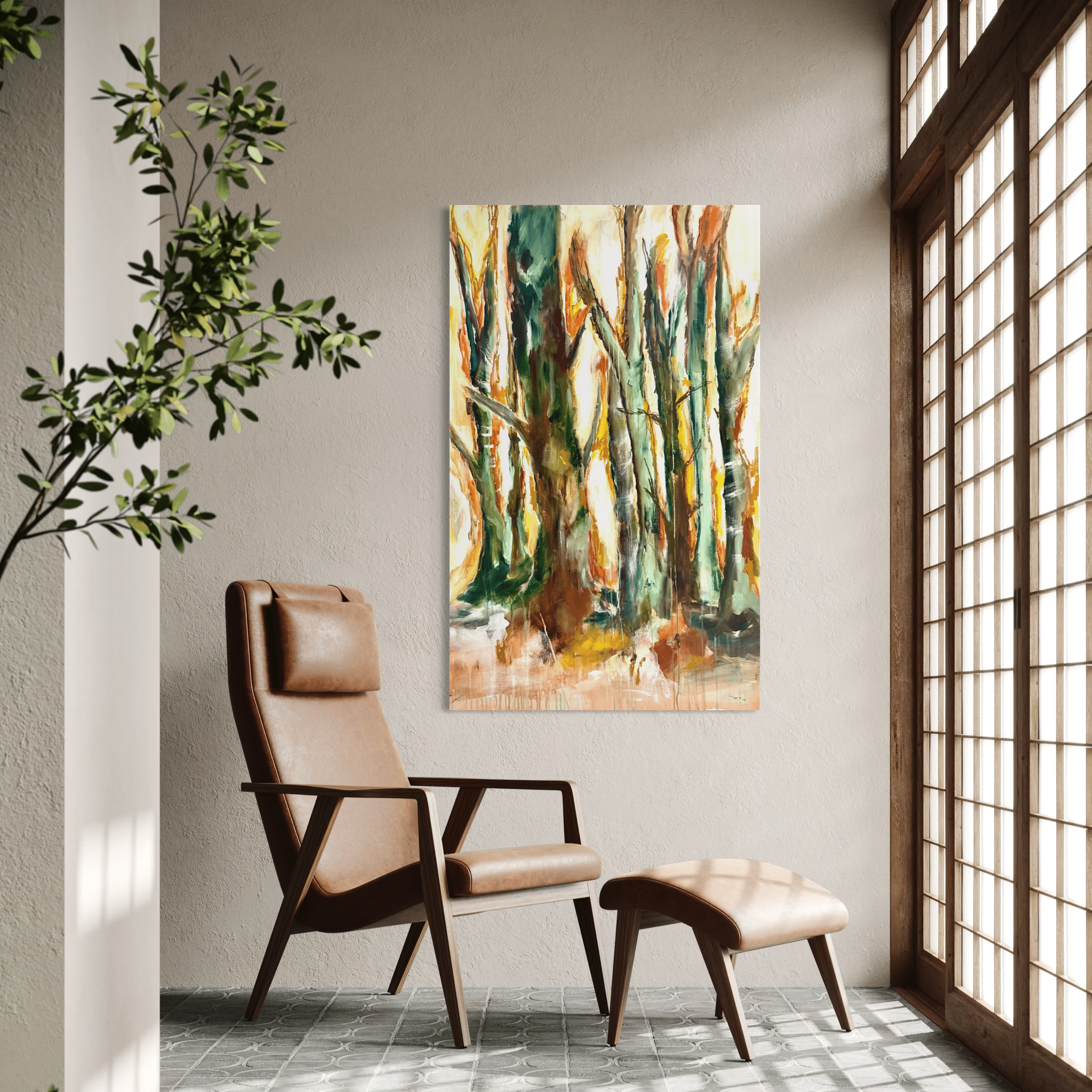 Primært, da det er mere sikkert end fragt med en transportør. Samtidig vil jeg også gerne vise dig maleriet i mit studies inspirerende rammer, og give dig tips og tricks til placering og styling af dit maleri.
