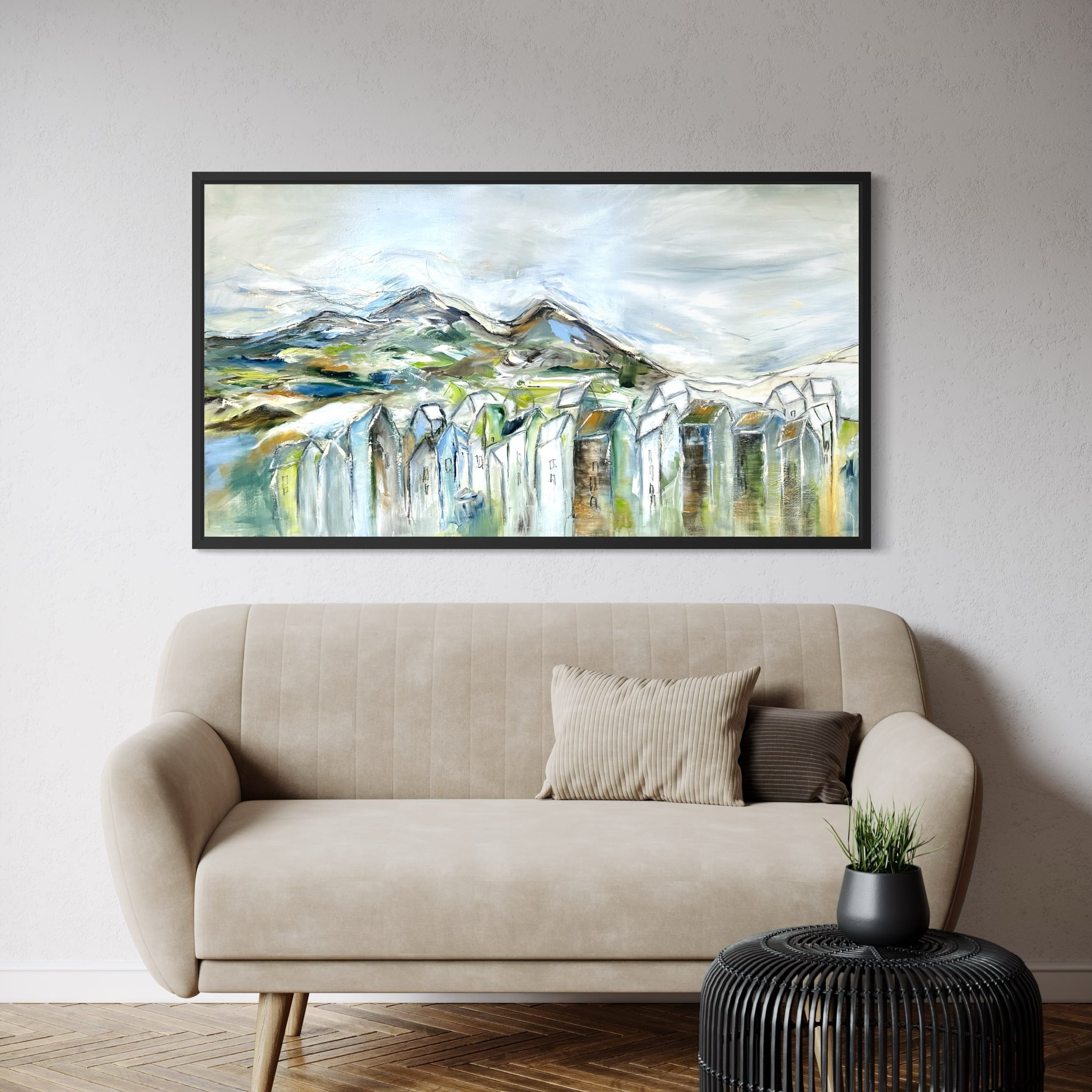 Primært, da det er mere sikkert end fragt med en transportør. Samtidig vil jeg også gerne vise dig maleriet i mit studies inspirerende rammer, og give dig tips og tricks til placering og styling af dit maleri.