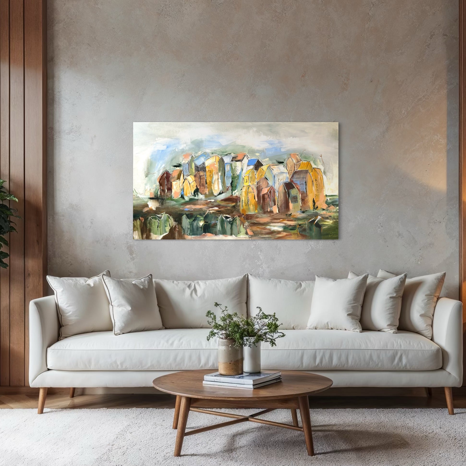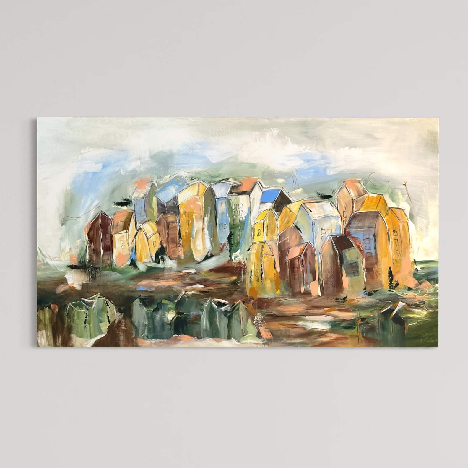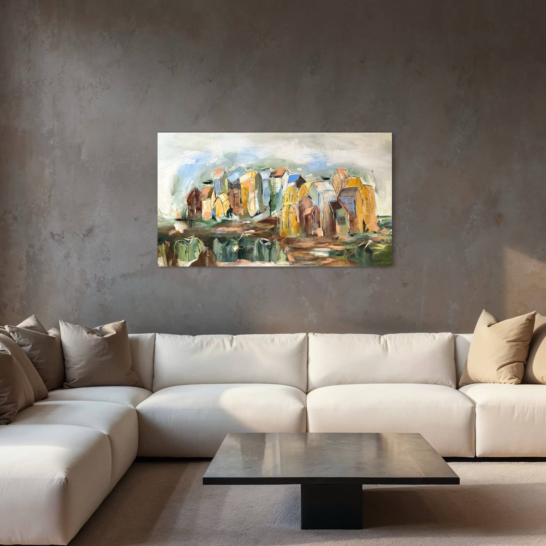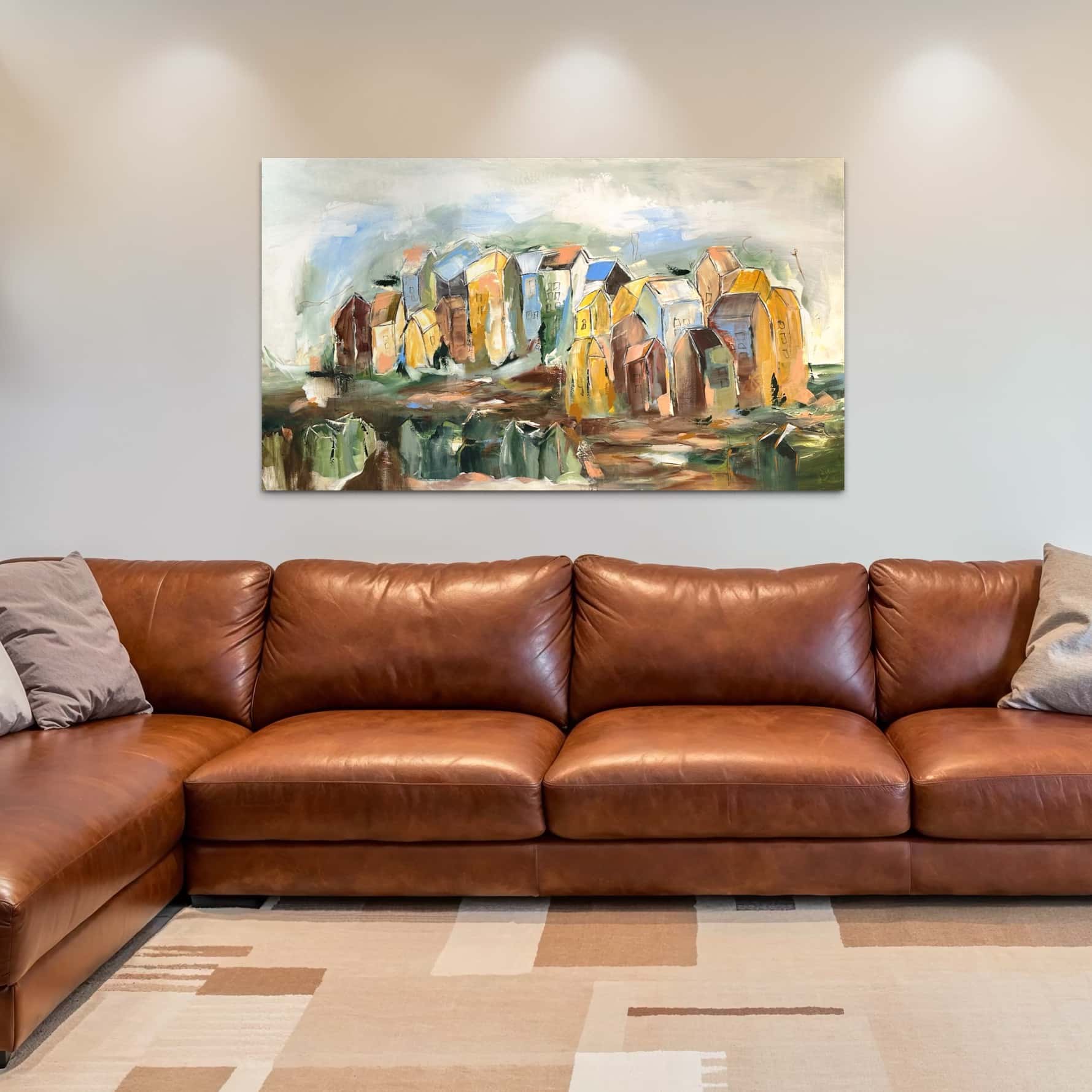 Primært, da det er mere sikkert end fragt med en transportør. Samtidig vil jeg også gerne vise dig maleriet i mit studies inspirerende rammer, og give dig tips og tricks til placering og styling af dit maleri.