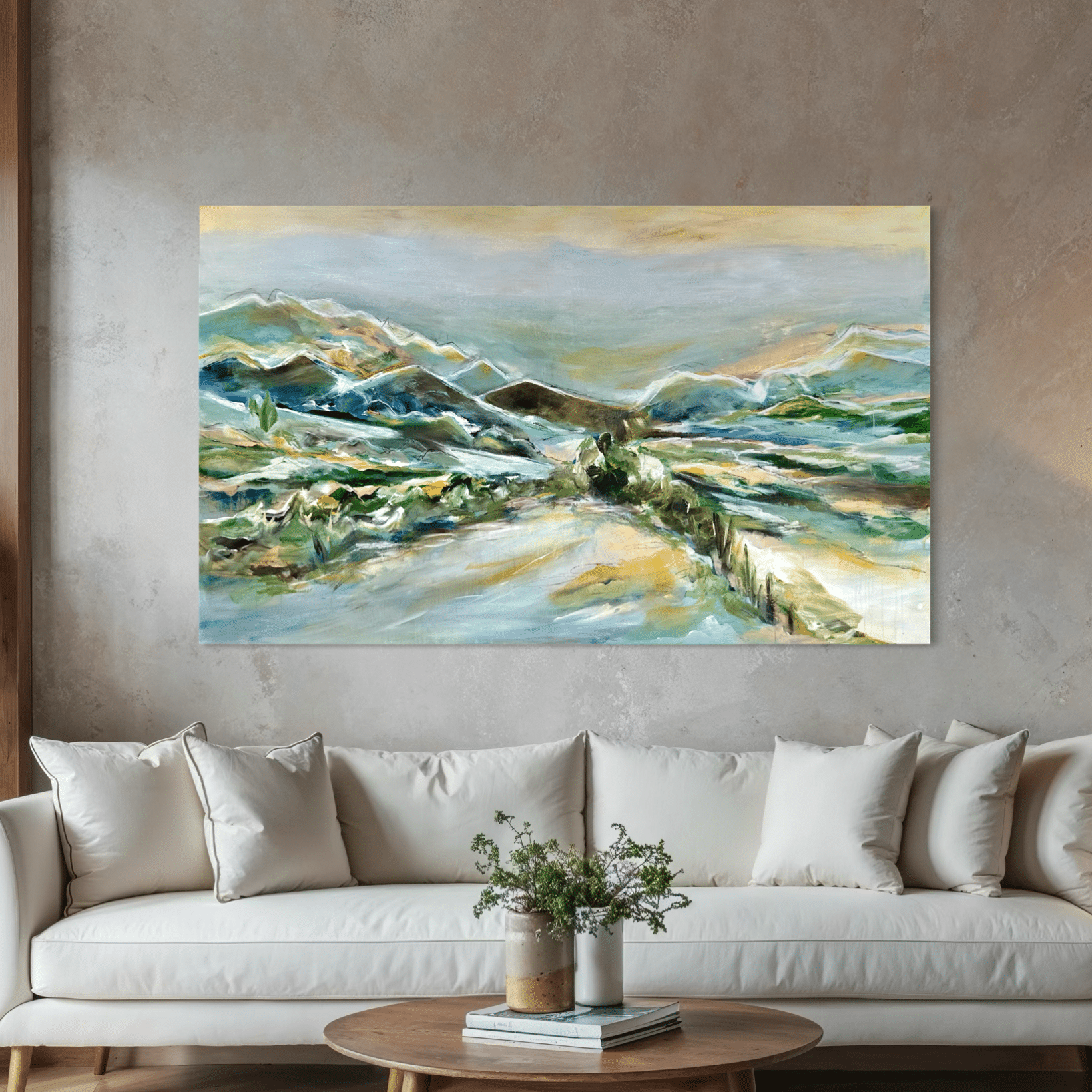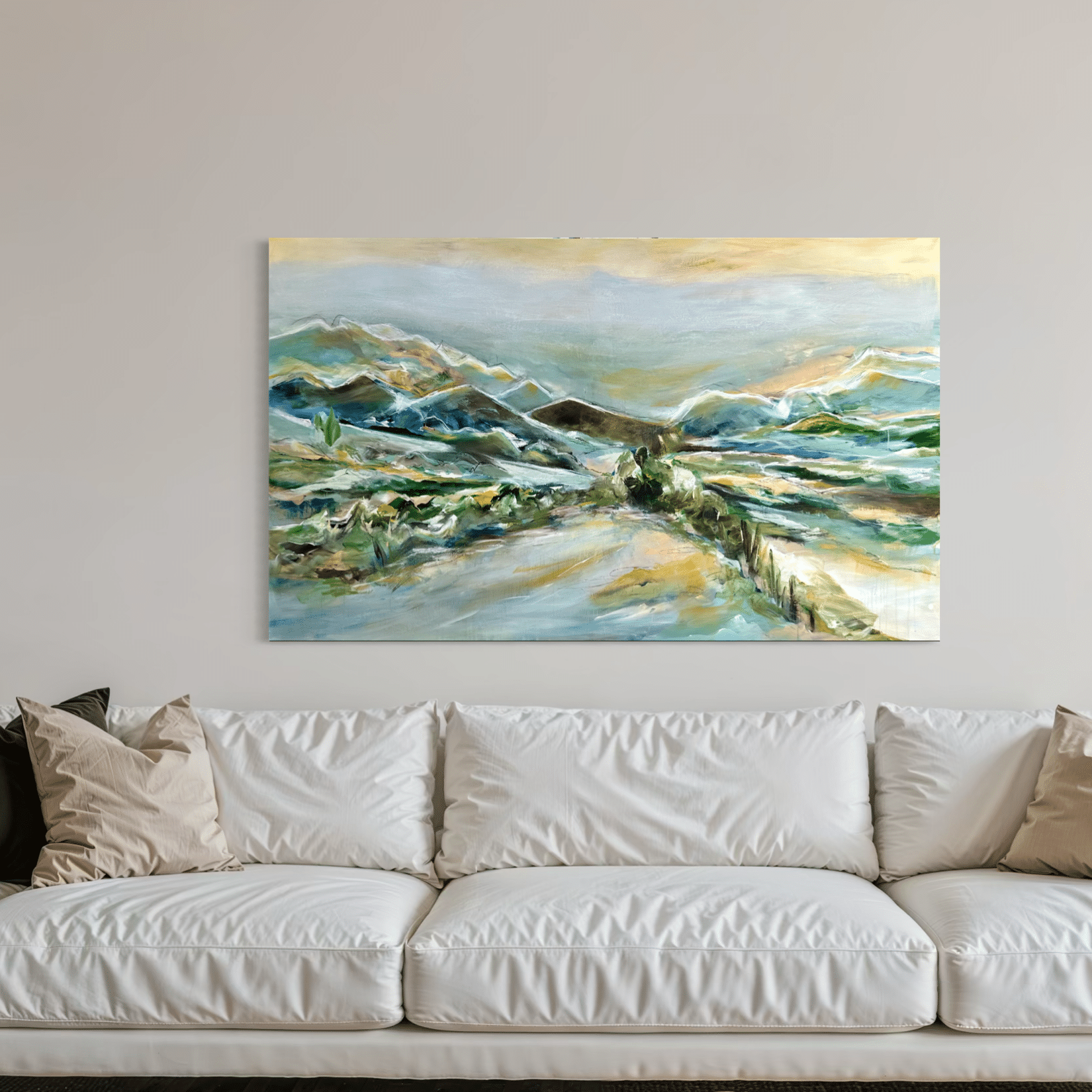 Primært, da det er mere sikkert end fragt med en transportør. Samtidig vil jeg også gerne vise dig maleriet i mit studies inspirerende rammer, og give dig tips og tricks til placering og styling af dit maleri.