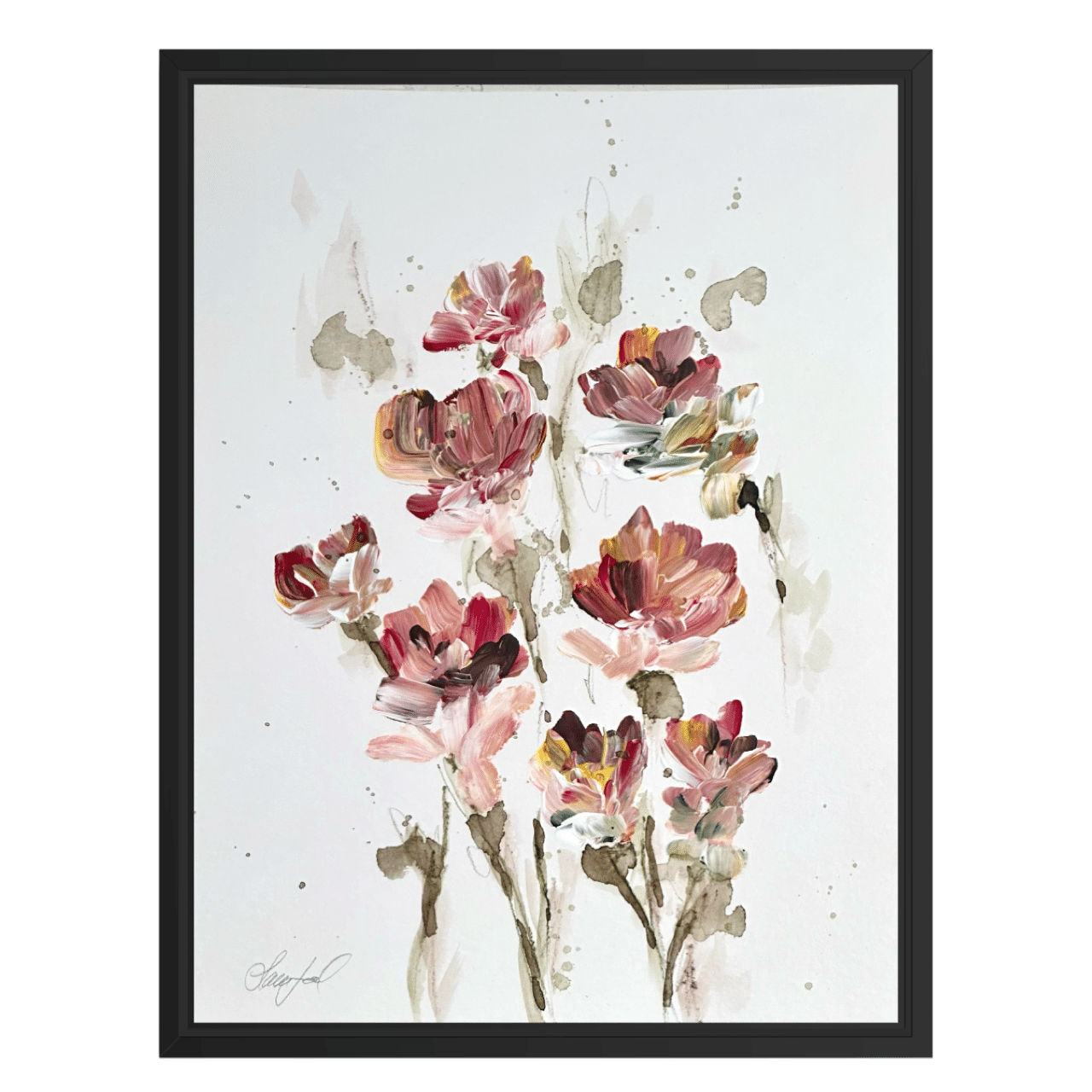 Alle værker er unikke og originale, og monteret i en sort træramme med en smule træstruktur.