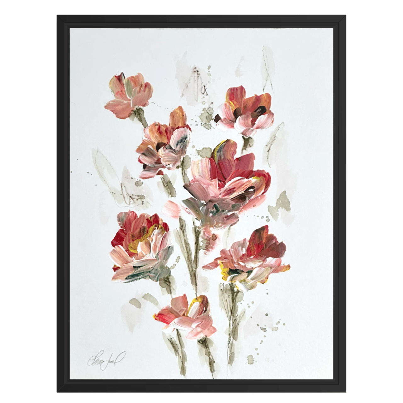 Alle værker er unikke og originale, og monteret i en sort træramme med en smule træstruktur.