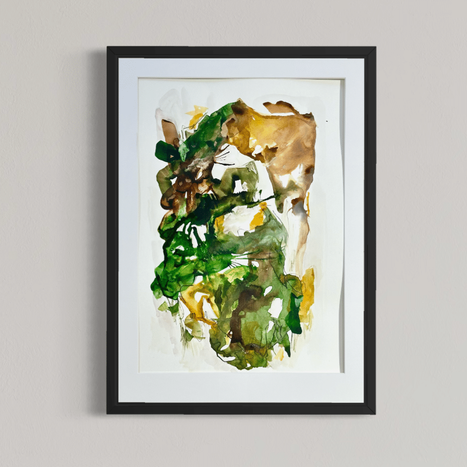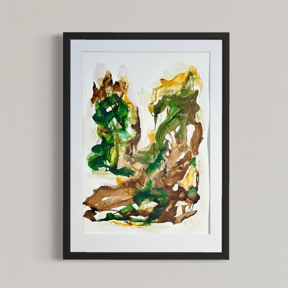 Alle værker er unikke og originale, og monteret i en sort træramme med en smule træstruktur.