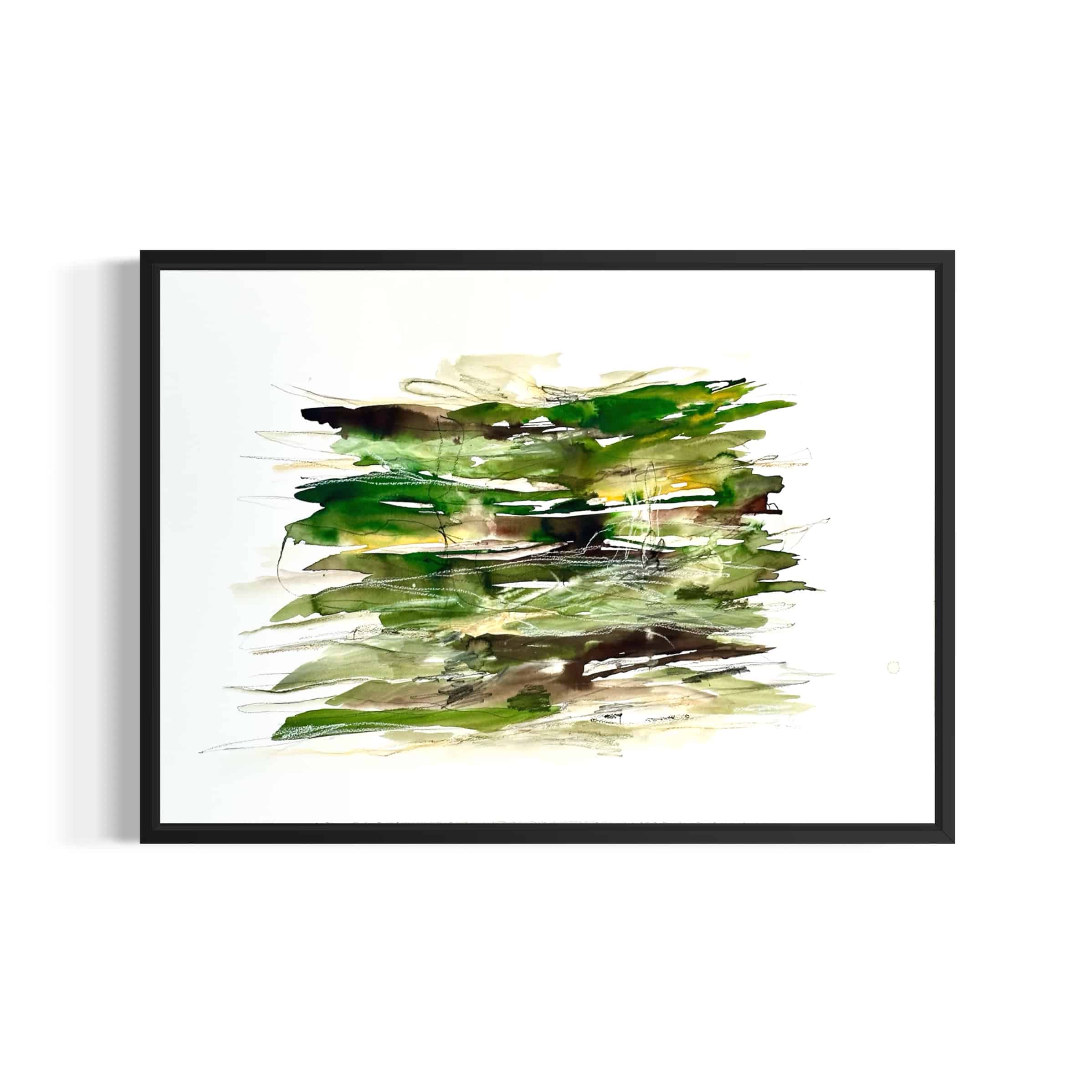 Alle værker er unikke og originale, og monteret i en sort træramme med en smule træstruktur.