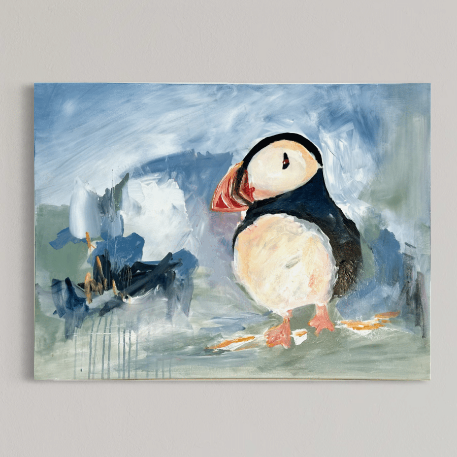 Primært, da det er mere sikkert end fragt med en transportør. Samtidig vil jeg også gerne vise dig maleriet i mit studies inspirerende rammer, og give dig tips og tricks til placering og styling af dit maleri.